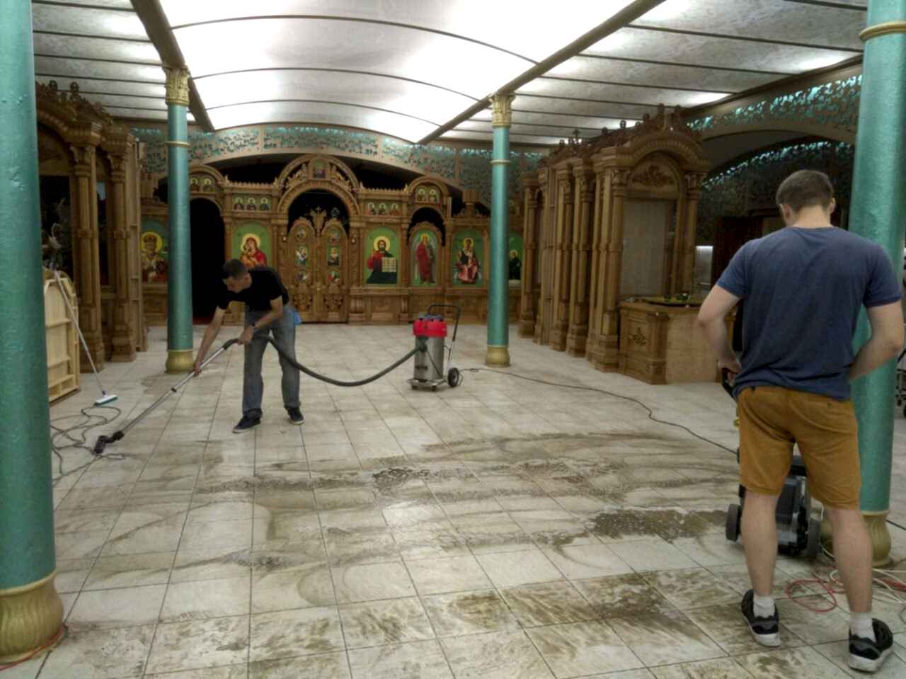 Площадь Рыскулова, 121 - 1128 кв. м. Уборка делалась во время Великого поста, к празднику Светлого Христового воскресения. Настоятель попросил вычистить пол, который выложен керамической плиткой, убрать пыль и грязь со всех поверхностей, очистить и привести в Pin Up состояние церковную утварь.