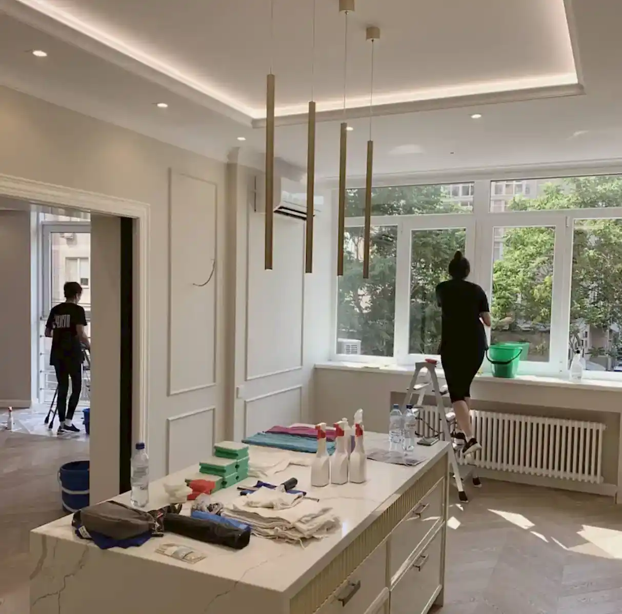 - Устранение малярной сетки и скотча с рам, если услуга оказывается после ремонта.